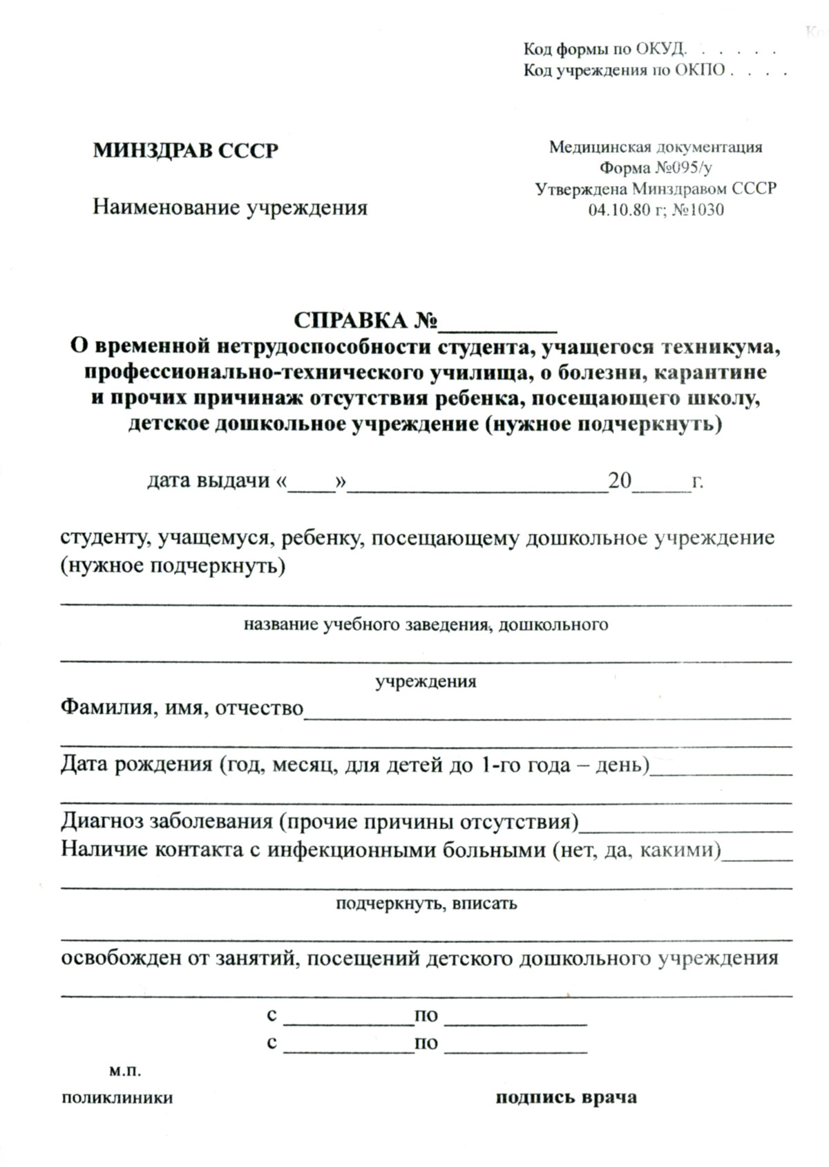 Оптимальный выход из подобных ситуаций – предоставление «прогульщиком» в детский сад/учебное заведение справки формы 095/у. Этот медицинский документ является аналогом больничного листа, отличаясь от последнего тем, что не является основанием для начисления заработной платы.
